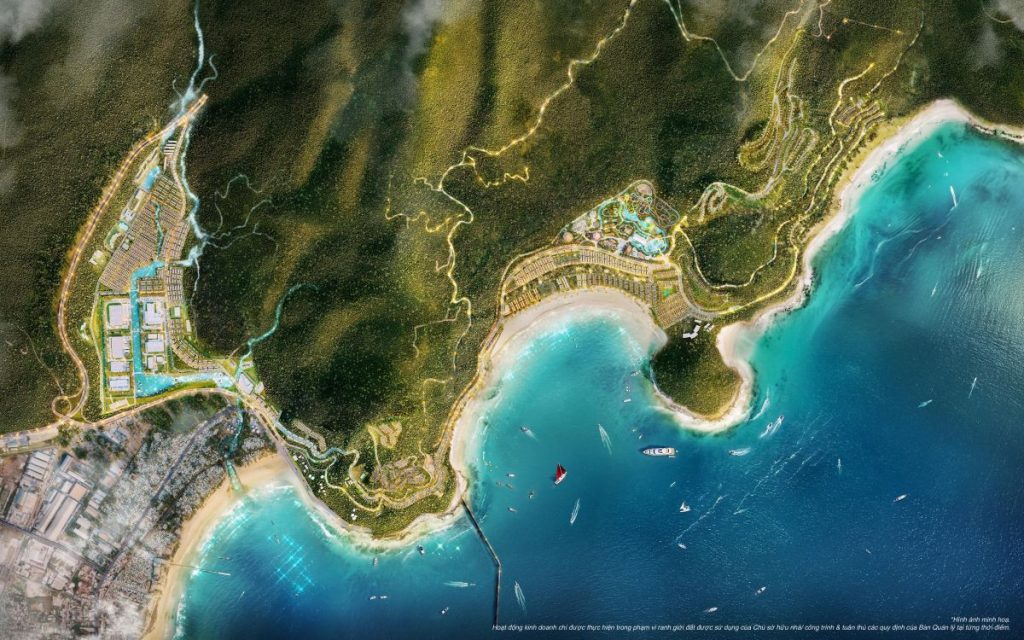 Với quy mô hơn 512ha, dự án trải dài bên vịnh Nam Chơn – nơi hội tụ vẻ đẹp giao thoa giữa núi rừng và biển cả. Thế đất “lưng tựa núi, mặt hướng biển” mang lại không gian sống vừa vững chãi, vừa thoáng đạt, mở ra tầm nhìn rộng lớn ra đại dương.